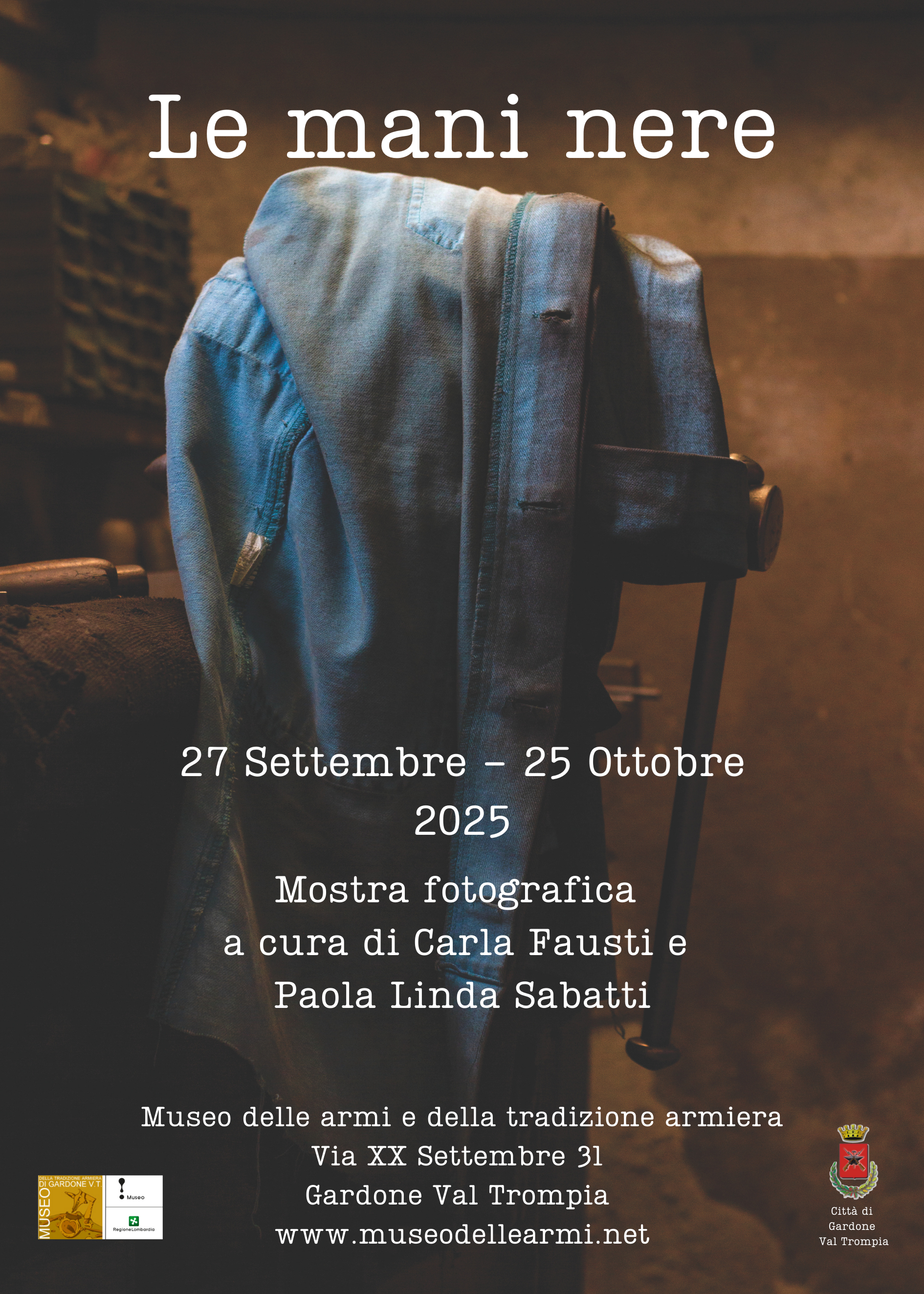 La mostra fotografica nasce dagli scatti di Carla Fausti, antropologa documentarista, e Paola Linda Sabatti, fotografa, studiati e realizzati durante le riprese del documentario “Le Mani nere” dedicato ai fratelli Pirlo e dell’Armeria San Giorgio a Gardone Val Trompia.